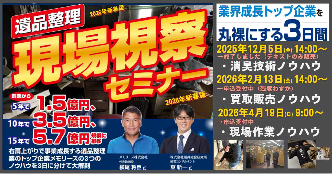 <遺品整理>現場視察セミナー★リアル限定★3日間